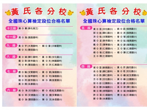 第78-1屆全國珠心算檢定段位合格名單