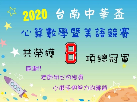 2020 台南中華盃心算、數學暨美語競賽共榮獲八項總冠軍